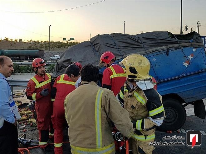 مجید انوشه؛ فرمانده نجاتگران درباره جزئیات این حادثه اظهار کرد: به گفته شاهدان، یک دستگاه خودروی باری نیسان، حامل میوه و ترهبار، در هنگام حرکت با سرعت زیاد با گاردریلهای بزرگراه برخورد کرده و راننده آن نیز درون خودرو گرفتار شده بود.