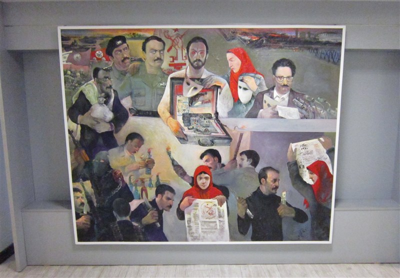 وی با اشاره به خلق یک تابلوی قطع عمودی درباره حوادث سال 60، افزود: این تابلو یکی از اعضای منافقین را نشان میدهد که از اتاقش در حال رصد یک مسجد و برنامهریزی برای اجرای نقشه ترور است. یک مسلسل هم به شانهاش آویزان است. جلوی مسجد یک حجله قرار داده شده است.