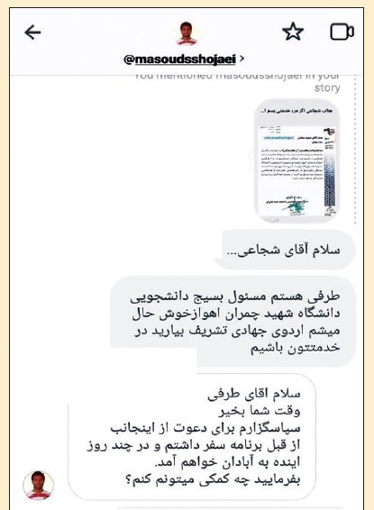 اما بسیج دانشجویی دانشگاه شهید چمران اهواز مسیر دیگری را اتخاذ کرد و نشان داد هنوز هم که هنوز است، جنبش دانشجویی میتواند از طریق گفتوگو و دیالوگ اثرگذار باشد؛ مسیری که درنهایت به دعوت از این بازیکن تیم ملی برای حضور در استان خوزستان منتهی شد و نکته قابلتوجه در اینباره آن است که شجاعی نیز از این دعوت استقبال و حتی کمک مالی برای خوزستانیها واریز کرد.
