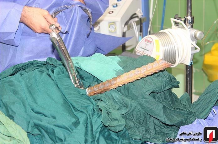 وی افزود: با توجه به حساسیت این مأموریت، آتشنشانان، در دو ساعت عملیات و تلاش فراوان، در حضور پزشکان متخصص در اتاق عمل با استفاده از تجهیزات برشکاری، میلگرد را برش دادند.