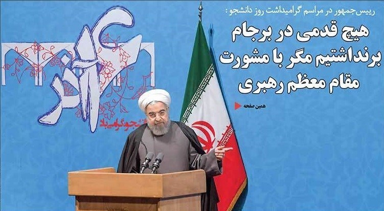 در همین رابطه روحانی (16 آذر 95) در دانشگاه تهران گفت: «ما هیچ قدمی در مسئله برجام برنداشتیم مگر آنکه با مقام معظم رهبری مشورت کردیم».