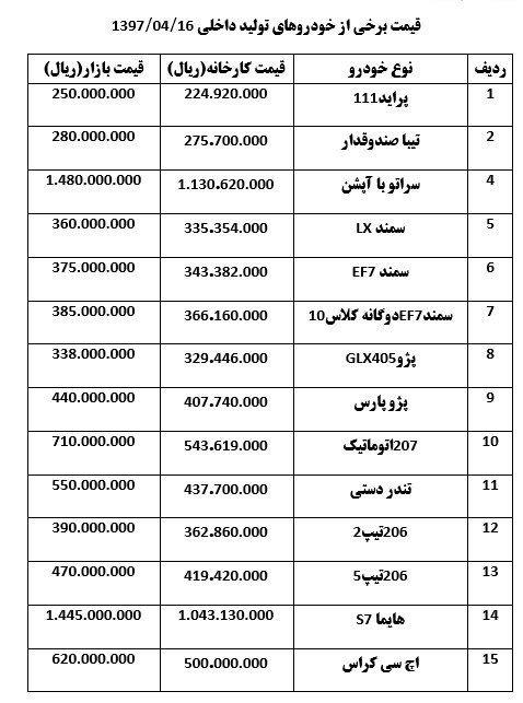 قیمت خودرو در بازار امروز بهشرح زیر است: