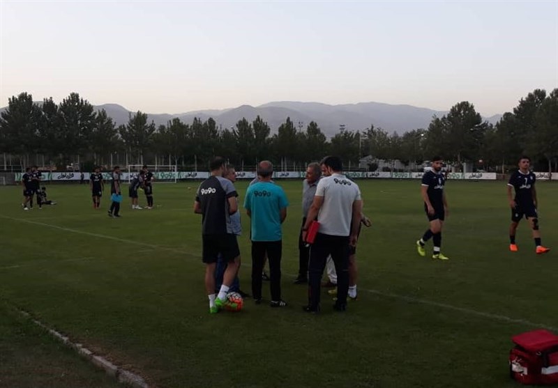 * بازیکنان زیر نظر کادر فنی تمرینات تاکتیکی و پاسکاری در گروههای چندنفره انجام دادند.
