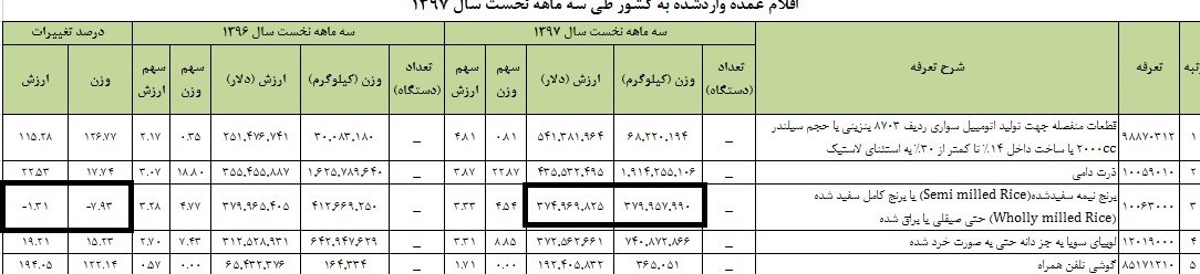 نگاهی به لیست منتشر شده از سوی بانک مرکزی نشان میدهد تا روز 9 تیر ماه برای حداقل 100 واردکننده به میزان تقریبی 500میلیون یورو از طریق بانک و سامانه نیما تامین ارز انجام شده است. به گفته دبیر انجمن واردکنندگان برنج میزان ثبت سفارش واردات برنج (در این مدت کوتاه از آغاز سال) نزدیک 700 میلیون دلار براورد شده است.