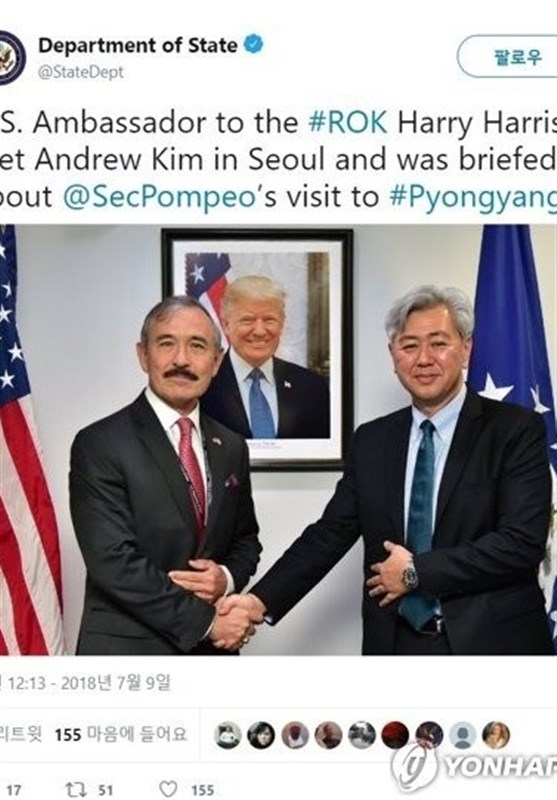 این مطلب را سفارت آمریکا در سئول در حساب توئیتر خود اعلام کرده است. جزئیات بیشتری از این دیدار منتشر نشده است. این نشست نخستین فعالیت علنی سفیر جدید آمریکا از زمان ورود به سئول به شمار می رود. هری هریس روز شنبه وارد سئول شده است. از ژانویه 2018 تاکنون آمریکا هیچ گونه سفیری در کره جنوبی نداشته است.