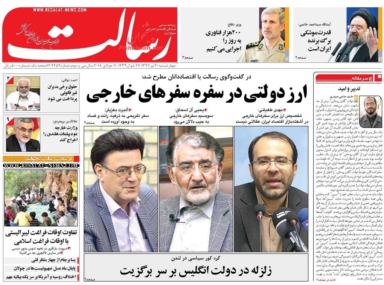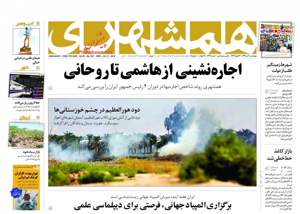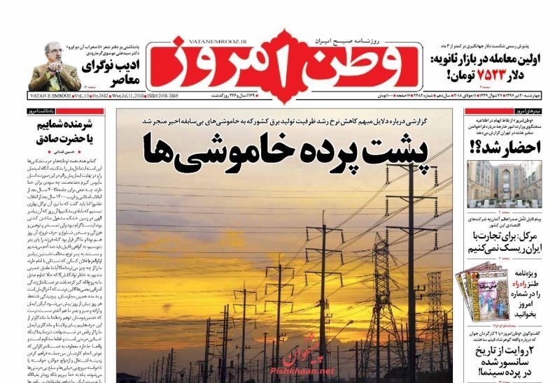 تصاویر صفحه روزنامه‌های چهارشنبه 20 تیر