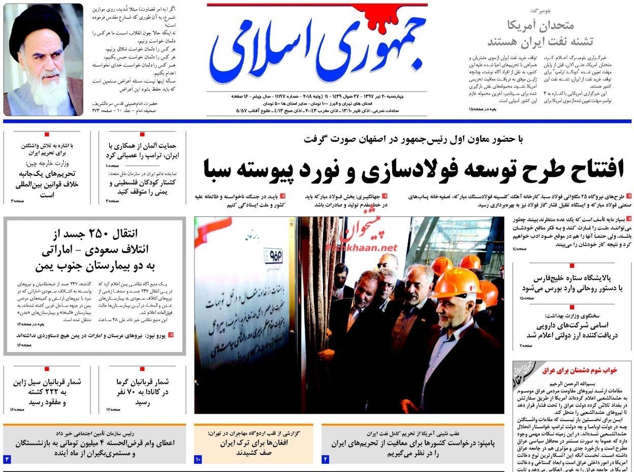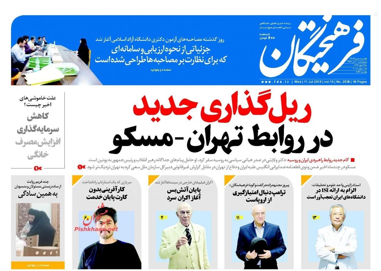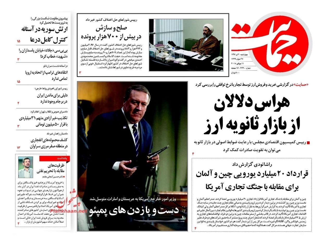 منتخب تصاویر صفحات نخست روزنامه‌های چهارشنبه 20 تیر منتشر می‌شود.