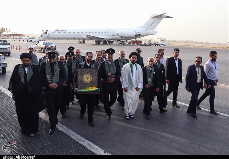 آئین استقبال از خادمان حرم مطهر امام رضا(ع) در فرودگاه اهواز