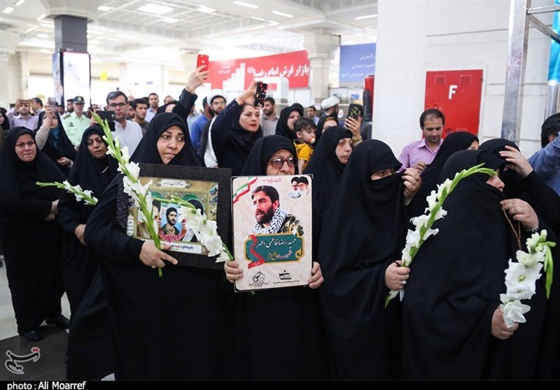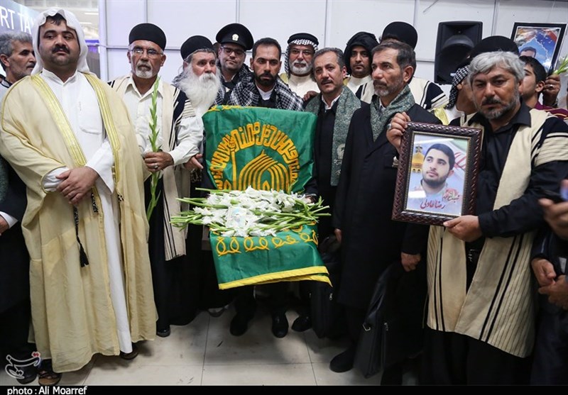 ورود کاروان خادمان امام رضا(ع) مورد استقبال گرم و دیدنی خانواده‌های شهدای مدافع حرم، مردم از جمله  عشایر عرب و بختیاری  در فرودگاه اهواز قرار گرفت.