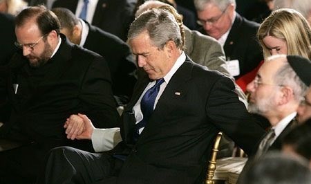 جرج بوش پسر در مراسم عبادی یکی از فرقههای یهودی
