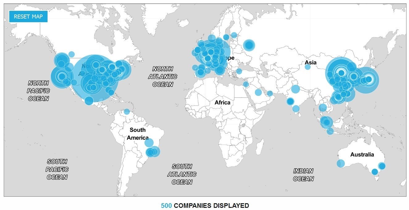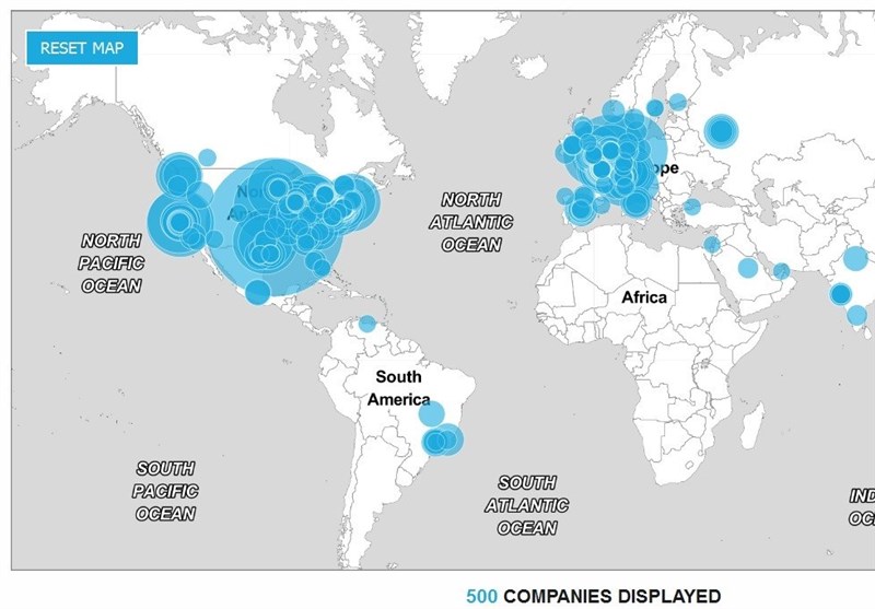 نقشه پراکندگی 500 شرکت بزرگ دنیا در سال 2017 میلادی29
