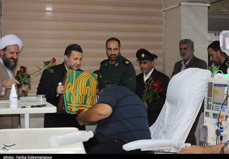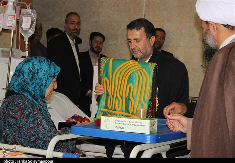 در این برنامه معنوی، بیماران با استقبال از خادمان آستان قدس رضوی بر پرچم متبرک بارگاه ملکوتی ثامنالحجج(ع) تبرک جستند و بر آن بوسه زدند و خادمان حرم رضوی نیز شفای عاجل آنها را از خداوند خواستار شدند.