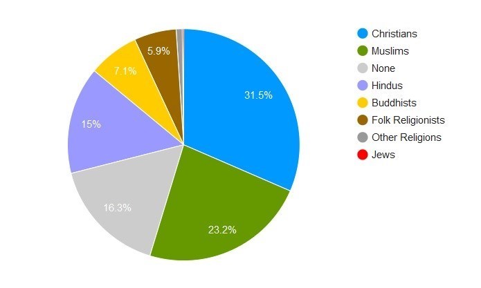 ترکیب جمعیتی ادیان در جهان نیز جالب است. بر اساس آخرین مطالعات، در سال 2010 میلادی،‌ از میان حدود 7 میلیارد جمعیت جهان، 2.2 میلیارد نفر مسیحی، 1.6 میلیارد نفر مسلمان، 1.1 میلیارد بی‌دین، 1 میلیارد هندو، 500 میلیون بودیست، 400 میلیون نفر معتقد به ادیان نوظهور، 58 میلیون نفر معتقد به آیینهای متفرقه، و کمتر از 14 میلیون نفر یهودی بوده‌اند.