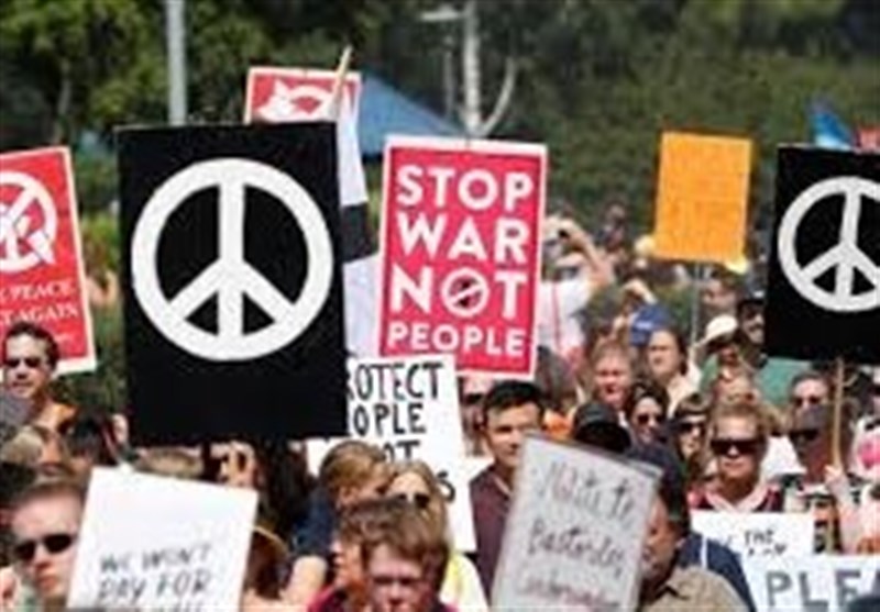بر اساس این گزارش، تظاهرات کنندگان پارچه نوشته هایی در دست داشتند که روی آن نوشته شده بود: "به دنبال دستیابی به صلح باشید نه جنگ. مهاجران و پناهجویان مورد استقبال قرار می گیرند."