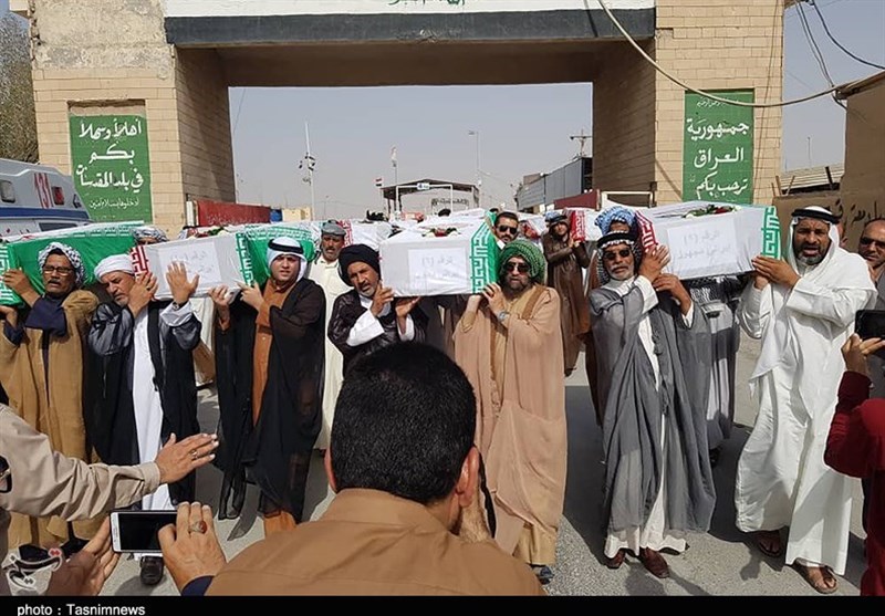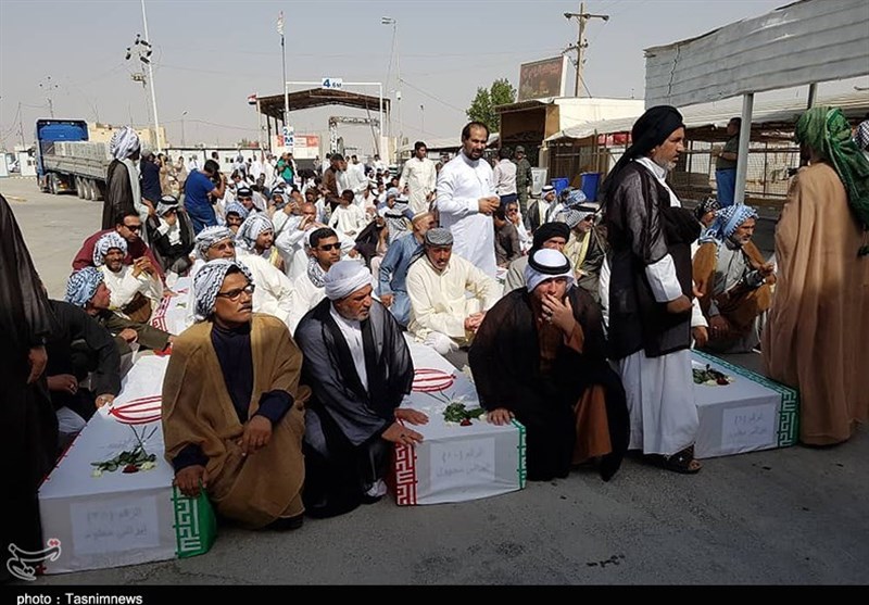 پیکر پاک 75 تن از شهدای تازه تفص شده از مرز شلمچه وارد کشور شد.