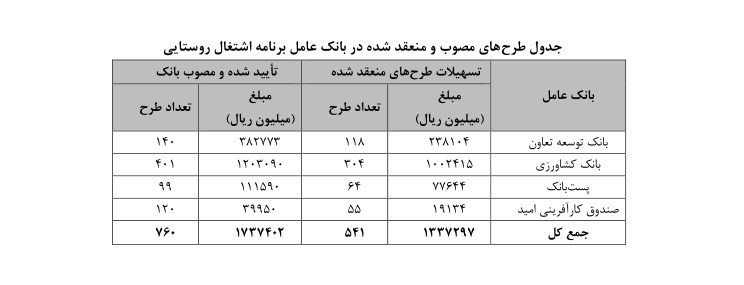 این میزان اعتبارات توسط بانک های توسعه تعاون، کشاورزی، پست بانک و صندوق کارآفرینی امید طبق جدول زیر توزیع شده است.