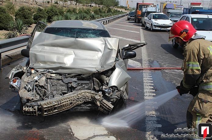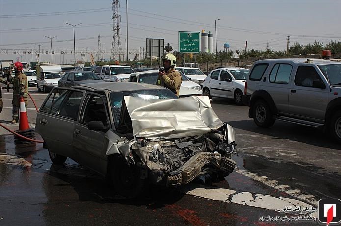 به گزارش گروه اجتماعی باشگاه خبرنگاران پویا؛ ساعت 15:08 روز گذشته طی تماس رانندگان خودروهای عبوری با سامانه 125 آتش‌نشانی تهران مبنی بر برخورد شدید دو دستگاه خودرو با یکدیگر، ستاد فرماندهی آتش‌نشانی تهران بلافاصله زنگ ایستگاه 125 را به صدا درآورد و آتش‌نشانان را به محل حادثه واقع در بزرگراه آزادگان، بعد از ورودی الغدیر اعزام کرد.