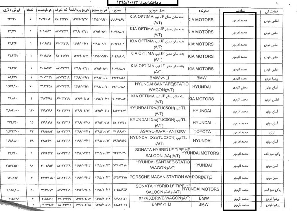 به گزارش خبرنگار اقتصادی خبرگزاری تسنیم، نگاهی به لیست ثبت سفارشهای غیر مجاز خودرو که امروز منتشر شد نشان میدهد، فردی به نام محمد آذر مهر در صفحات مختلف این لیست حضور دارد.