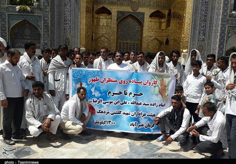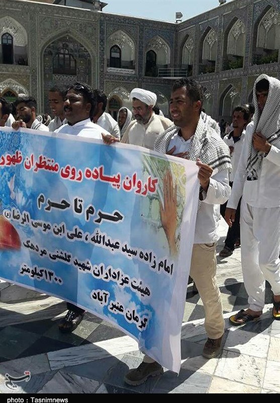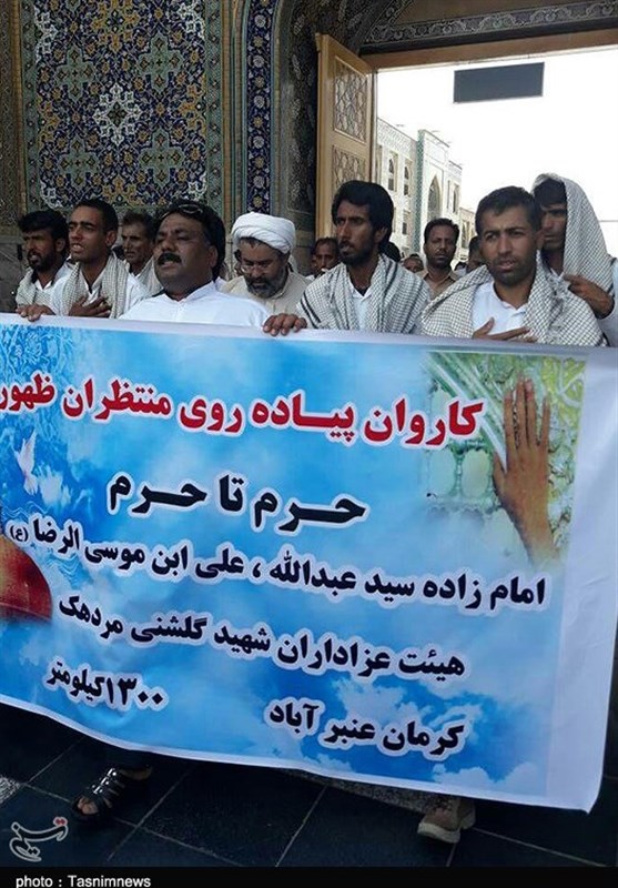 به گزارش خبرگزاری تسنیم از کرمان، کاروان پیادهروی منتظران ظهور که حرکت خود را از مرقد سیدعبدالله بخش جبالبارز جنوبی شهرستان عنبرآباد آغاز کرده بود پس از طی مسافت هزار و 300 کیلومتر و پس از 19 روز پیادهروی صبح امروز به حرم مطهر امام علیابن موسیالرضا(ع) رسید.
