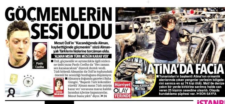 به گزارش گروه بینالملل خبرگزاری تسنیم، بسیاری از روزنامههای ترکیه، امروز در عکس و تیتر صفحه نخست، به آتش سوزی در آتن یونان اهمیت دادند و روزنامه جمهوریت تیتر تسلیت خود را به زبان یونانی منتشر کرد.