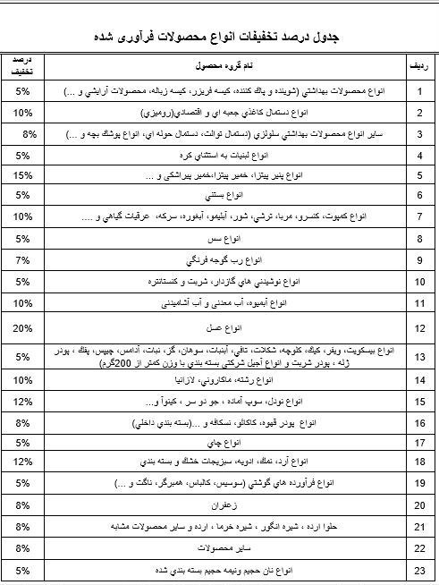 طرح تخفیفات محصولات فرآوری شده در راستای حمایت از شهروندان از دوشنبه 8 مردادماه سال جاری آغاز شده و تا اطلاع ثانوی ادامه خواهد داشت.گفتنی است، اطلاع رسانی‌های محیطی در میادین و بازارها صورت پذیرفته است.