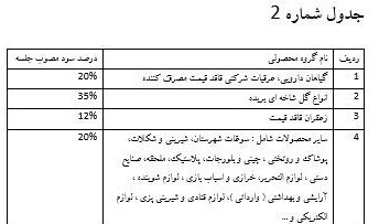 محصولاتی که فاقد قیمت مصرف کننده مندرج بر روی کالا هستند بر اساس اضافه کردن درصدی به عنوان درصد سود به مبلغ خرید محصول بر مبنای فاکتور معتبر بر مبنای درصدهای مندرج در جدول شماره 2 اقدام می‌شود.