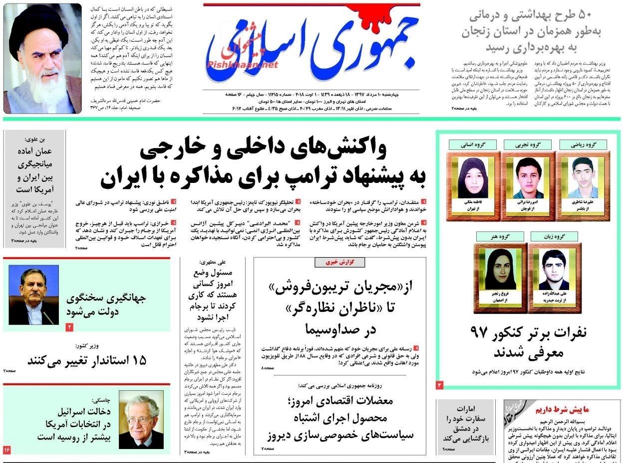 منتخب تصاویر صفحات نخست روزنامه‌های چهارشنبه 10 مرداد منتشر می‌شود.