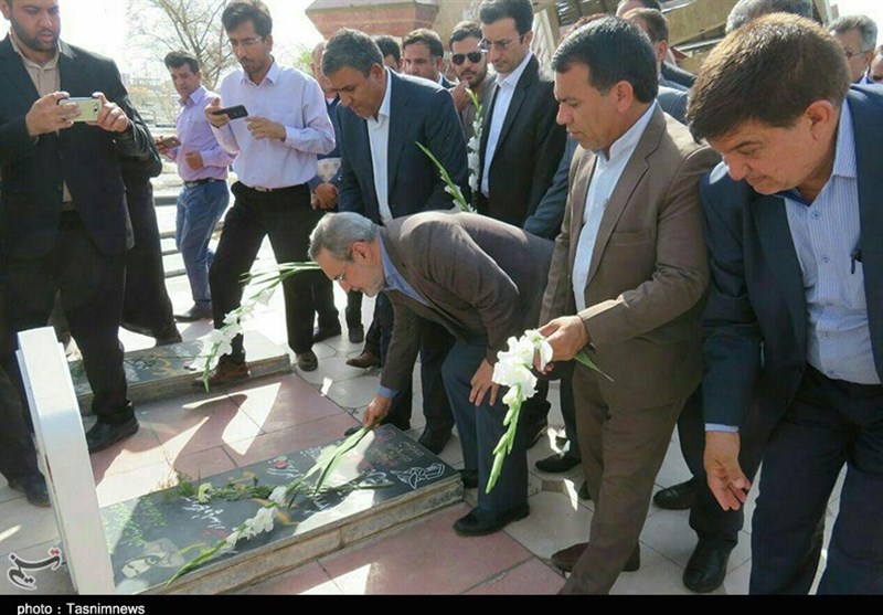 وزیر آموزش و پرورش در بدو ورود به شهرستان جیرفت به گلزار شهدای این شهرستان رفت و به مقام شامخ شهدای این شهرستان با اهدای گل ادای احترام کرد.