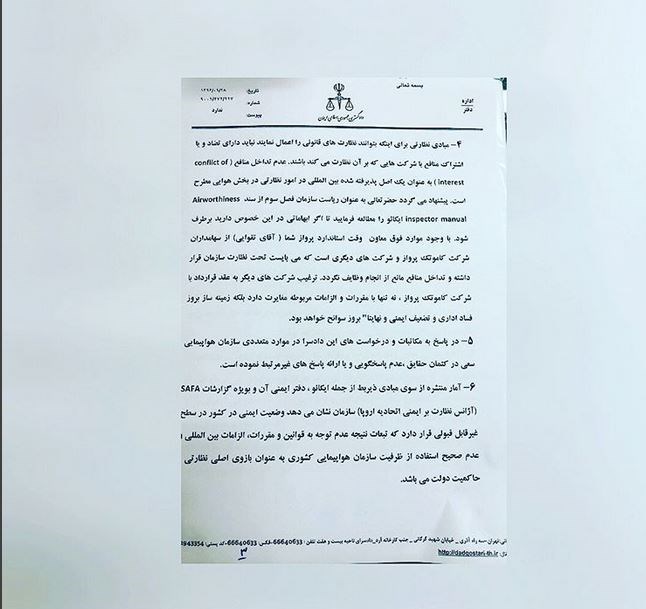 2-مجوز بهره برداری از هواپیما C of A غیر قانونی صادر شده است.