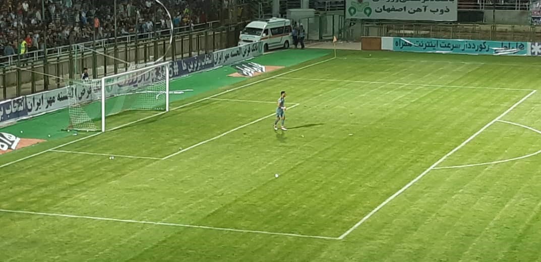 یکی از نکات حاشیهای این دیدار در نیمه نخست، پرتاب بطری آب به سمت رشید مظاهری از سوی هواداران استقلال بود.