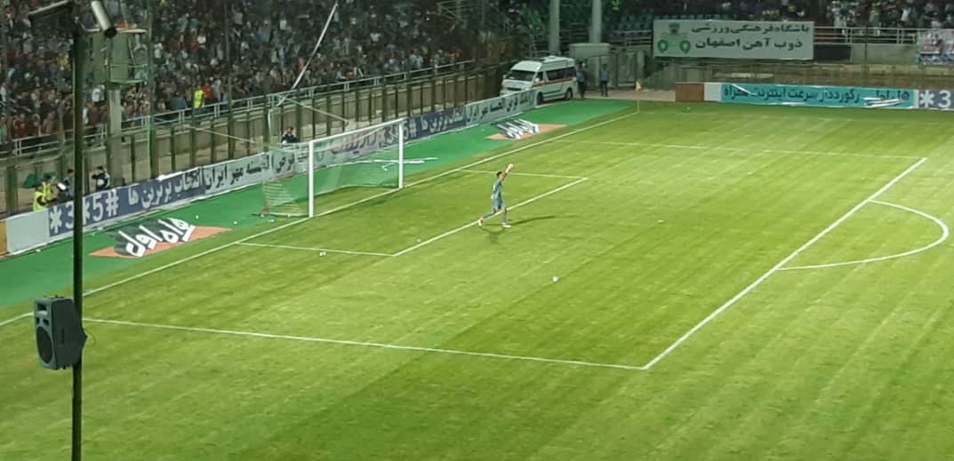 این حرکت بارها از سوی برخی تماشاگران استقلال که در جایگاه پشت دروازه تیم میزبان نشسته بودند تکرار شد و دروازهبان ملیپوش ذوبآهن از شعارهای آنها نیز بینصیب نماند.