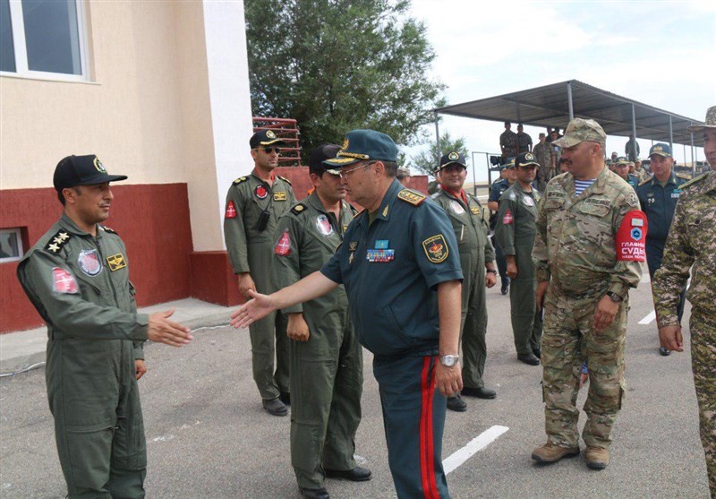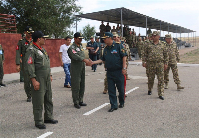 سپهبد ساکن ژاسوزاکوف در حاشیه مسابقات نظامی روسیه 2018 در قزاقستان ضمن بازدید از گروه و تجهیزات پروازی تیم ایران برای این تیم آرزوی موفقیت کرد.