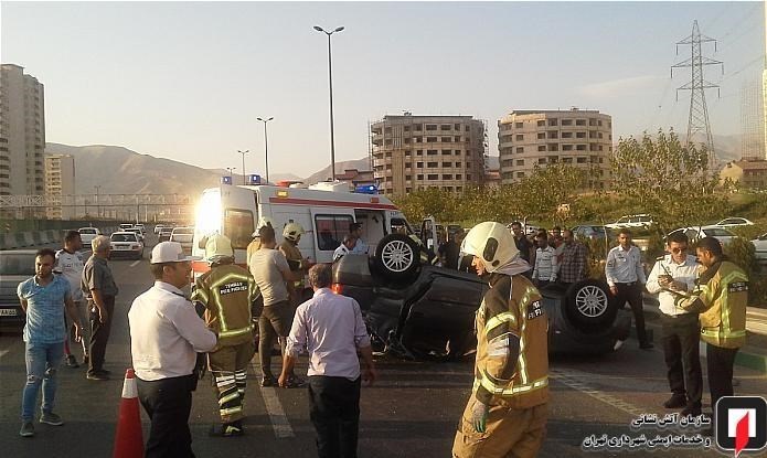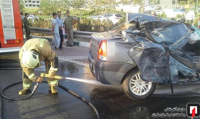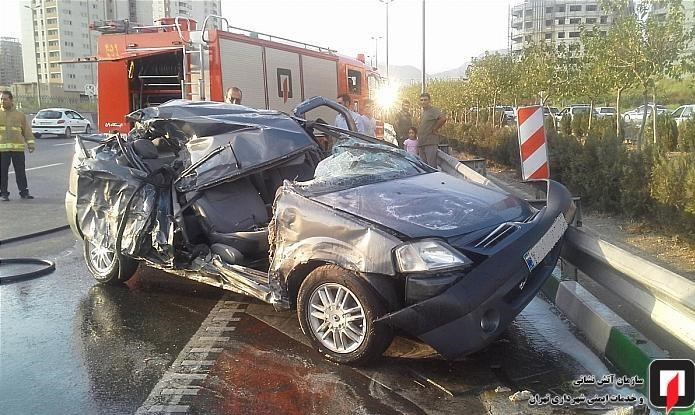 به گفته محمد اسدی؛ فرمانده آتشنشانان اعزامی؛ یک دستگاه خودروی سواری L90 با چهار سرنشین به شدت با گاردریلهای بزرگراه برخورد کرده و هر چهار سرنشین آن که در محدوده سنی بیست و سه تا سی و پنج ساله بودند، قبل از رسیدن آتشنشانان توسط شهروندان از داخل خودرو خارج شده و به شدت مجروح شده بودند.