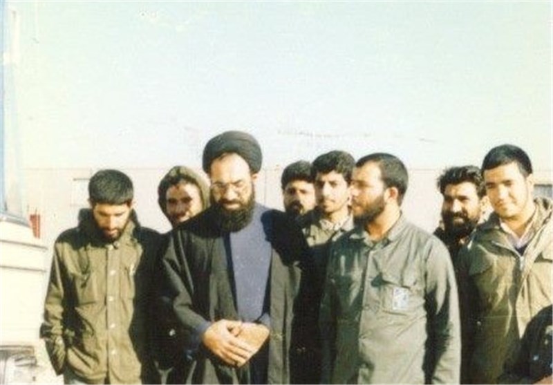 شهید عارف حسین حسینی در جمع رزمندگان دفاع مقدس