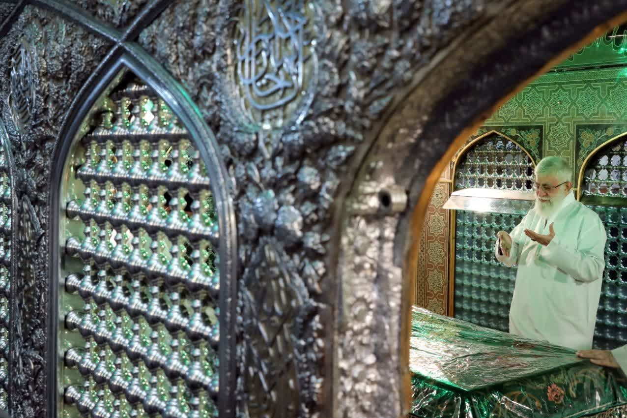 غبارروبی مضجع مطهر حضرت امام رضا(ع) با حضور امام خامنهای