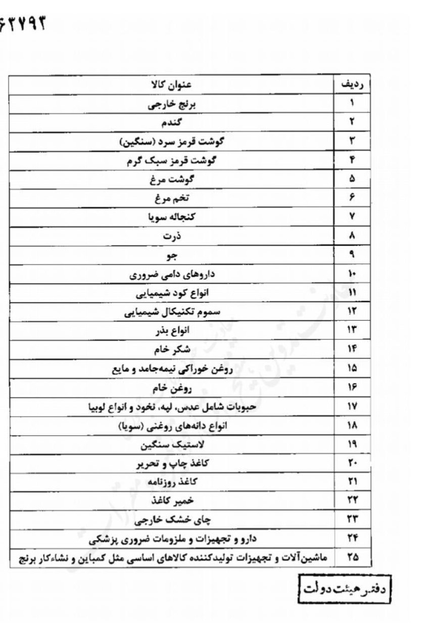وزارت صنعت، معدن و تجارت، قیمت این کالاها را برای مصرف کننده نهایی اعلام می کند و نرخ ارز برای این دسته از کالاها تا اردیبهشت ماه سال 1398، تغییر نخواهد کرد.