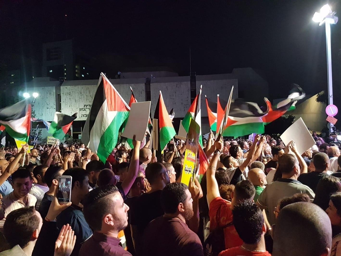 به گزارش گروه بین الملل خبرگزاری تسنیم به نقل از فلسطین الیوم، اعراب ساکن اراضی اشغالی در شهر تل آویو شعارهای "قانون دولت یهود باید لغو شود" و "بله به برابری" سردادند. این تظاهرات به درخواست کمیته عالی پیگیری اعراب در داخل اراضی اشغالی برگزار شد.