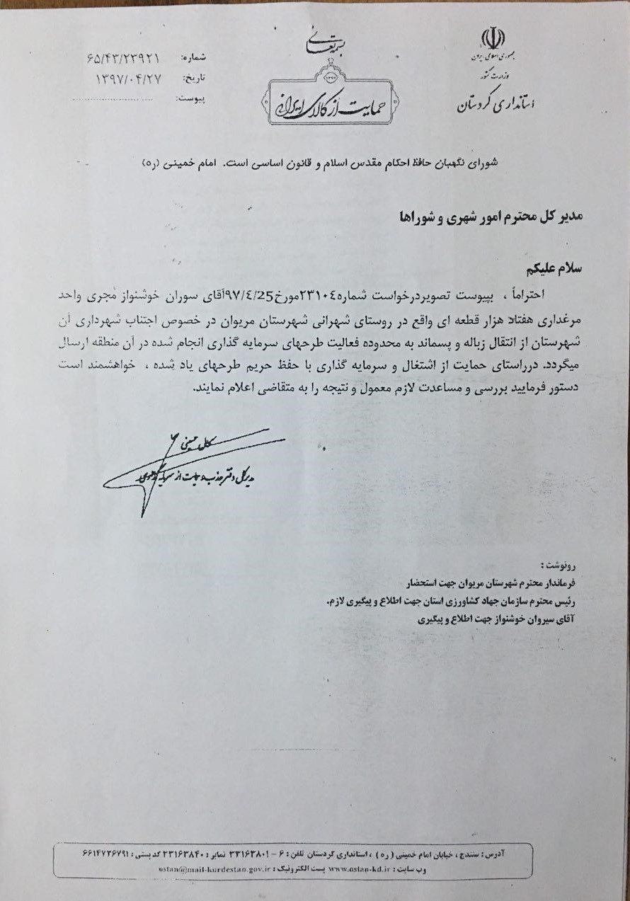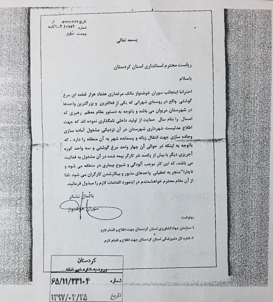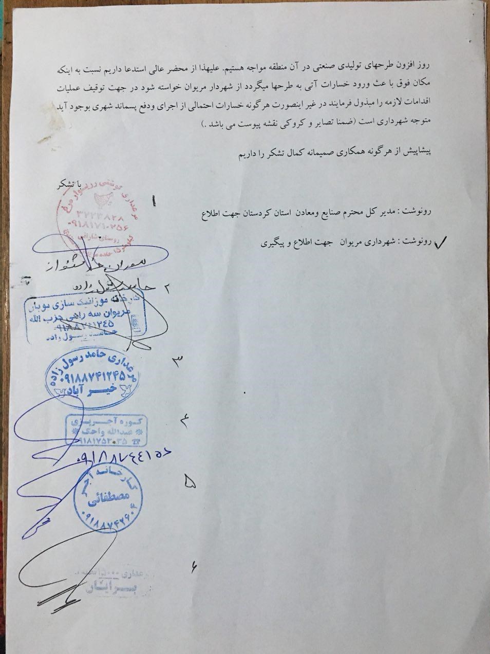 آنچه که در ادامه مشاهده میکنید سند وعدههای بیسرانجام شهرداری و شورای شهر مریوان و نقشه مکان جدید برای راهاندازی کارخانه بازیافت در روستای شهرانی بوده که مرغداران نسبت به این تصمیم معترض هستند.
