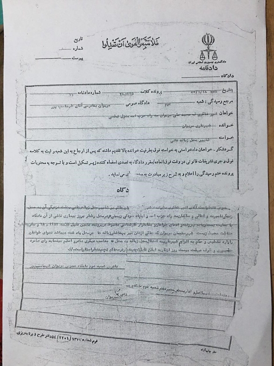 صاحب یکی از این مرغداریها در کنار روستای شهرانی میگوید: در سال 87 شهرداری مریوان اقدام به تخلیه زباله و پسماندهای شهری در 250 متری محل جدید مشخص شده برای راهاندازی سایت زباله کرده بود که بهعلت اعتراض افراد محلی، خصوصاً صاحبان واحدهای صنعتی و کشاورزی دادخواست حقوقی به شعبه دوم دادگاه عمومی مریوان ارائه و طی دادنامهای به مورخه 28.1.1385 رونده کلاسه شماره 1335-78 حکم انتقال محل دفع زباله صادر شد.