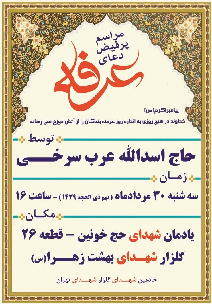 همزمان با فرا رسیدن ایام پرفیض ذی الحجه, مراسم دعای عرفه و تجدید میثاق با شهدا در گلزار شهدای بهشت زهرا(س) تهران برگزار می‌شود.