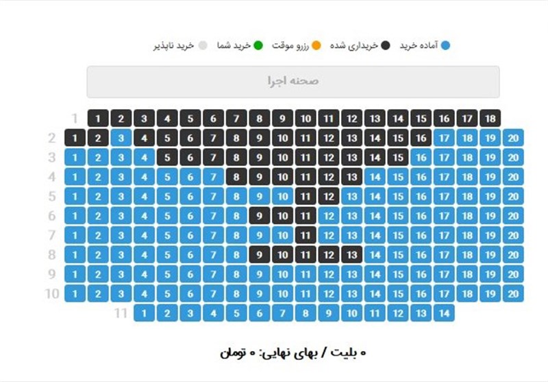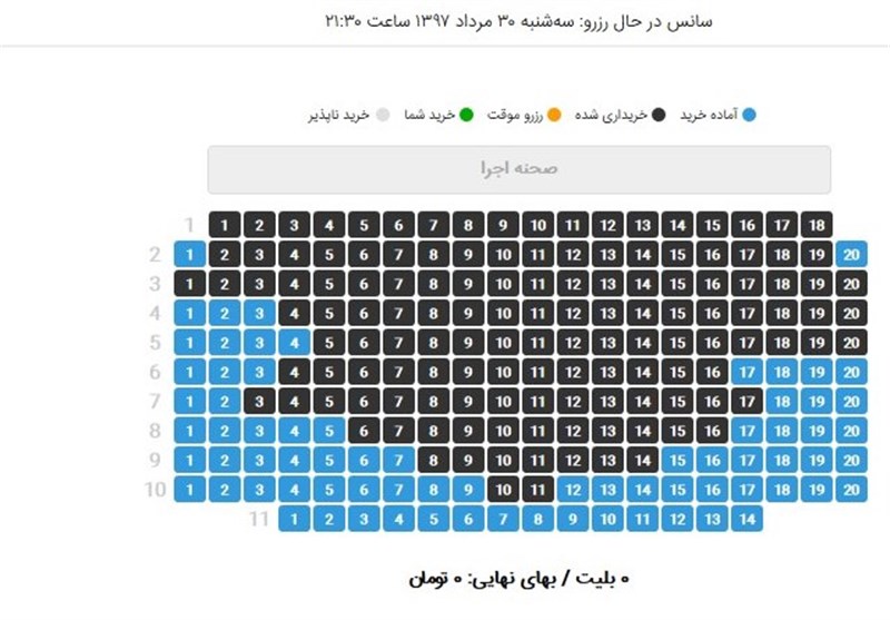 شواهد امر نیز نشان میدهد وجود بازیگران به آن نگاهی که شورا به اثر داشته است موجب جذب مخاطب نشده است. برای امروز وضعیت فروش نمایش به شکل زیر است: