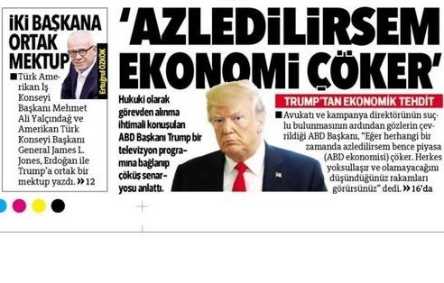 به گزارش گروه بینالملل خبرگزاری تسنیم، بسیاری از روزنامههای ترکیه، امروز در عکس و تیتر صفحه نخست خود، اظهارات دونالد ترامپ در مورد پیامدهای محاکمه و عزل او را برجسته کردهاند. همچنین این روزنامهها موضوعات دیگری مانند کشته شدن فرماندهان پ.ک.ک و فرار نماینده سابق شرناخ به یونان را مورد توجه قرار دادهاند.