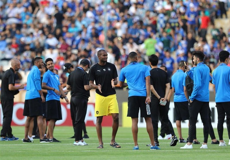 * اعضای تیم السد قطر دو ساعت مانده به آغاز بازی با استقلال وارد زمین شدند تا با حال و هوای ورزشگاه آشنا شوند.