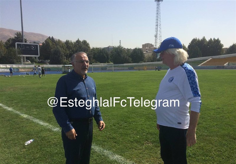 * وینفرد شفر و اصغر حاجیلو در حاشیه تمرین دقایقی با هم صحبت کردند.