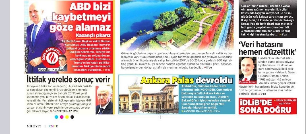 به گزارش گروه بین­‌الملل خبرگزاری تسنیم، بسیاری از روزنامه­‌های ترکیه، امروز در عکس و تیتر صفحه­ نخست، هشدارهای اردوغان در مورد فعالیت گروه گولن در قرقیزستان را برجسته کرده‌اند. همچنین این روزنامه­‌ها موضوعات دیگری مانند کشته شدن 15 شهروند در دو تصادف و روانه شدن سیل گردشگران به سوی شهر کردنشین تونجلی (درسیم) را مورد توجه قرار دادند.