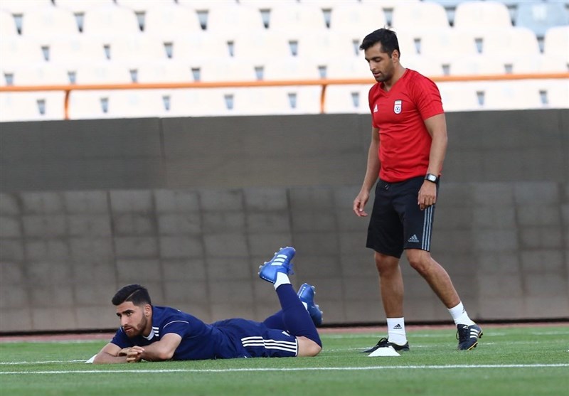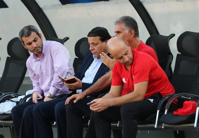 * کارلوس کیروش که در دو روز ابتدایی تمرین با لباس شخصی در محل تمرینات حاضر میشد بالاخره امروز لباس ورزشی به تن کرد تا تمرینات شکل جدیتری به خود بگیرد.