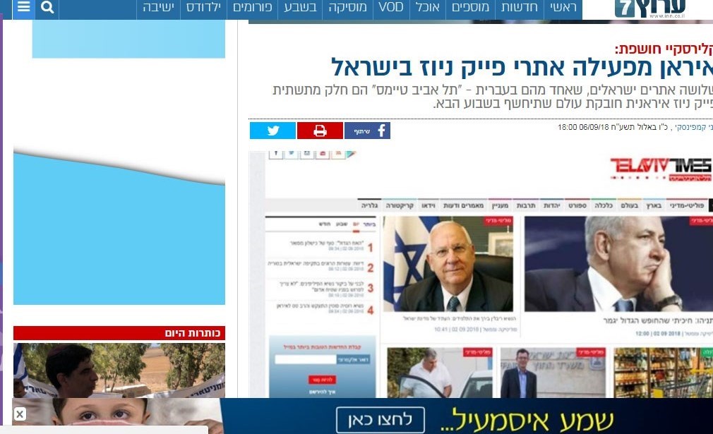 بر اساس این گزارش یکی از این سایت ها تل آویو تایمز است که جزو سایت های خبری عبری زبان است که هم اکنون مشخص شده است که به زعم این رسانه ها مشخص شده است کار تبلیغات برای ایران را انجام می دهد.