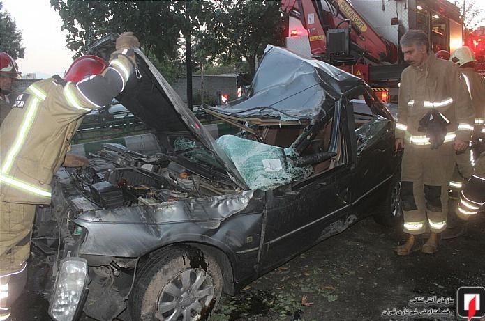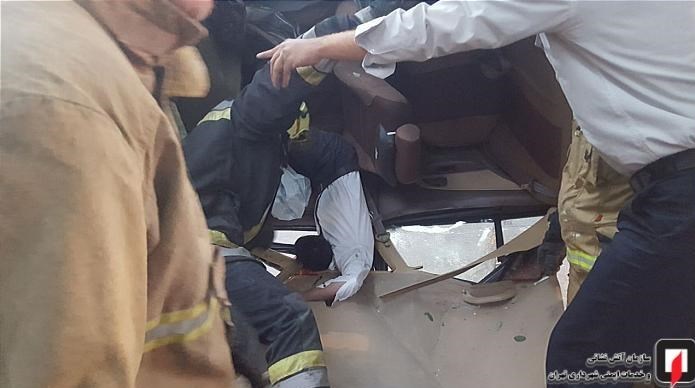 وی افزود: شدت تصادف به حدی بود که خودروی سواری کاملاً متلاشی و راننده آن (مردی پنجاه و پنج ساله که تنها سرنشین این خودرو بود) داخل اتاقک آن گرفتار و به سختی مجروح شده بود.