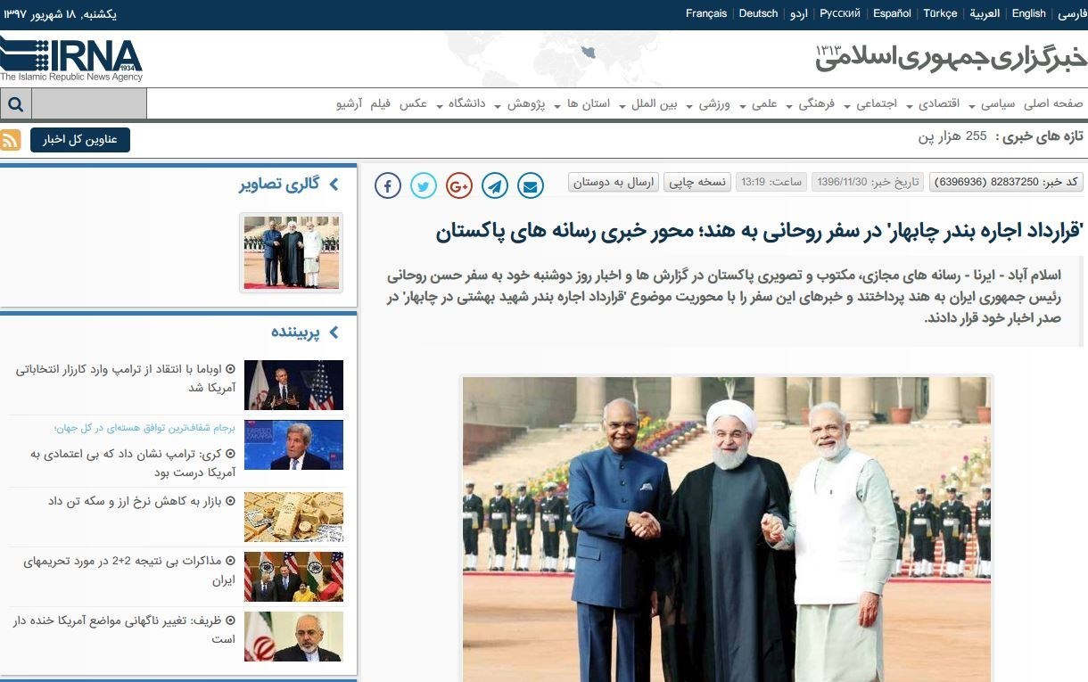 جالب است که خبر واگذاری مدیریت و اپراتوری بندر چابهار به هندیها که بر اساس قرارداد موجود است، اواخر سال گذشته هم بهگونهای دیگر منتشر شده بود، با این تیتر که "ایران بندر شهید بهشتی را به هند اجاره داد" که در جریان سفر حسن روحانی رئیس جمهور به هند در رسانههای دولت از جمله خبرگزاری ایرنا منتشر شد.