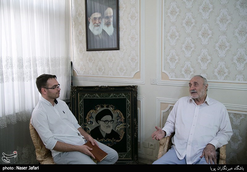 بر دیوار خانهاش تصویری از امام خمینی و آیتالله خامنهای نصب بود و از وی درباره ارتباطش با رهبر انقلاب در دوران مبارزه پرسیدیم که در پاسخ گفت: آیتالله خامنهای وقتی که ایرانشهر در تبعید بود من به دیدنش رفته بودم. ایرانشهر هم جایی بود که اصلاً نمیشد زندگی کرد. ایشان و آیتالله راشد یزدی در یک اتاق زندگی میکردند. یک چراغ خوراکپزی هم داشتند که نگهبانشان اجازه نمیداد بیرون اتاق از آن استفاده کنند. در آن گرما مجبور میشدند در یک اتاق کوچک، چراغ را روشن کنند. هر روز هم باید یک کیلومتر راه میرفت تا یک دفتری را امضا کند.